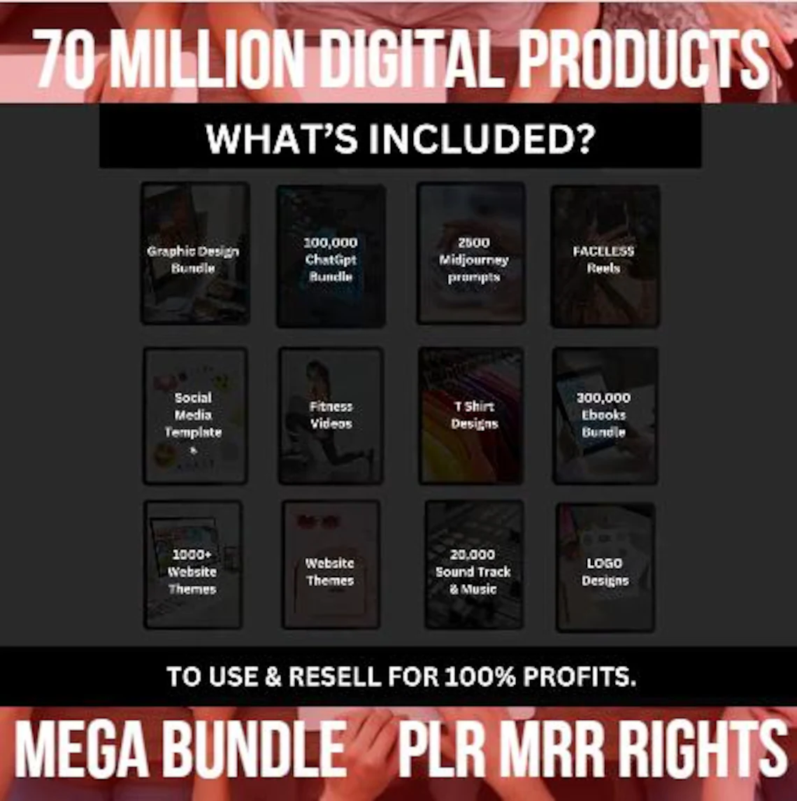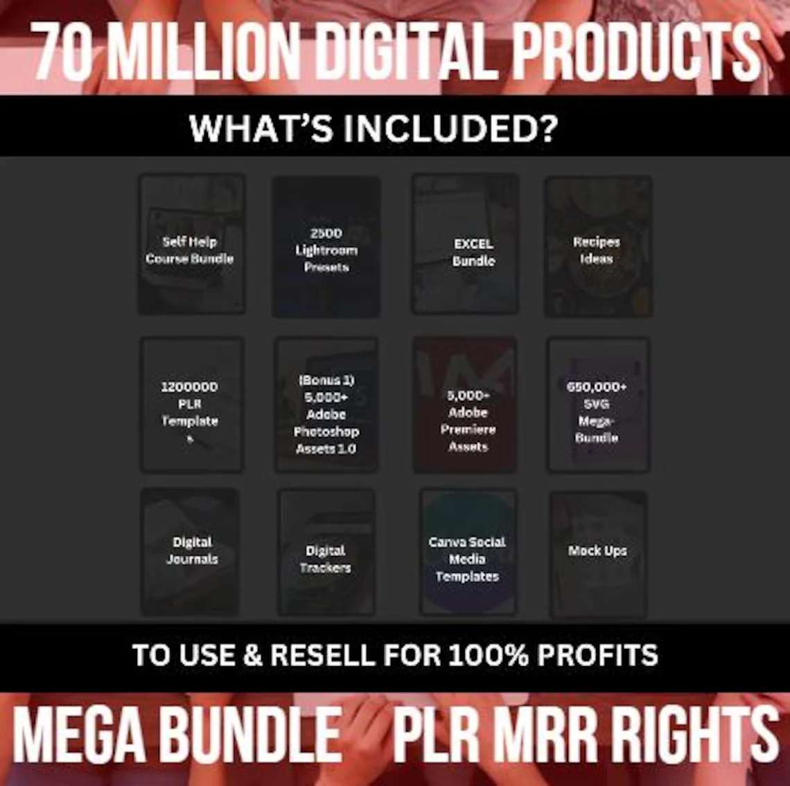 70M+ Digital Products Mega Bundle | Best Selling Items Pack | Digital Products Collection | Reels Bundle E-book Planner Set | Resell Rights
